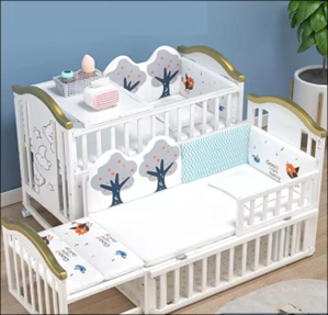 - Rocking Cot- Removing the wheel base, the cot will be converted into Rocking Cot.